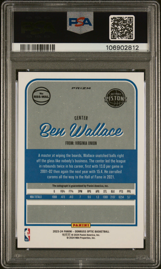 2023-24 Panini Optic Retro Series Signature Ben Wallace #RSS-WAL Detroit Pistons PSA 9