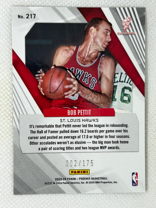 2023-24 Panini Phoenix Gold Ice /175 #217 Bob Pettit St. Louis Hawks Signed Card HOF