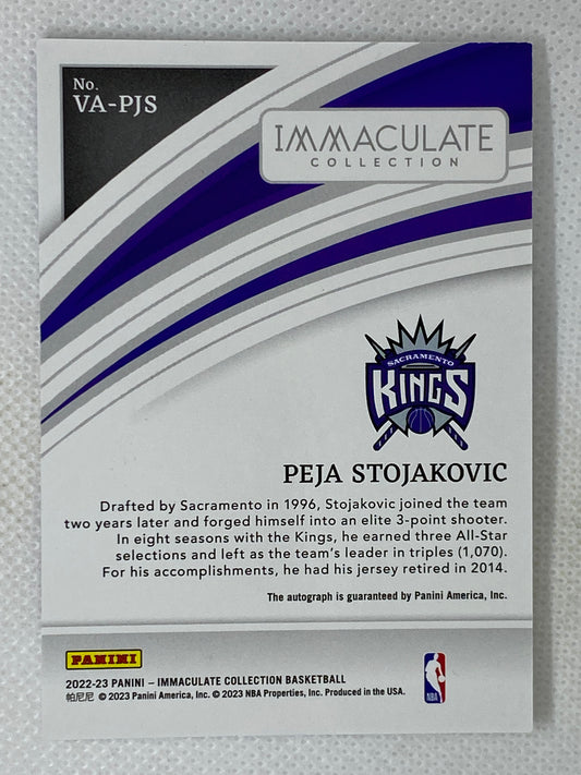 2022-23 Panini Immaculate Collection Virtuoso Autographs VA-PJS Peja Stojakovic /99 Sacramento Kings