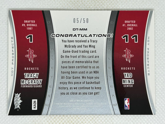 2006-07 Fleer Hot Prospects DoubleTeam All-Star Game Used Dual Relic /50 Tracy McGrady Yao Ming #DT-MM Houston Rockets