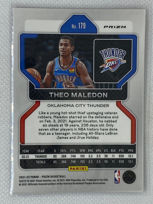 2021-22 Panini Prizm Red White & Blue Theo Maledon #179 Oklahoma City Thunder