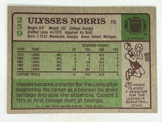1984 Topps #259 Ulysses Norris Detroit Lions Signed Card