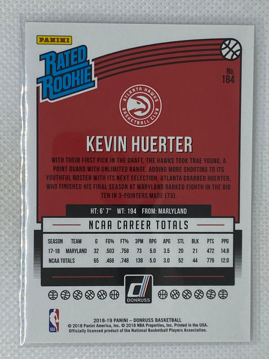 2018-19 Panini Donruss Rated Rookie Base #184 Kevin Huerter Atlanta Hawks