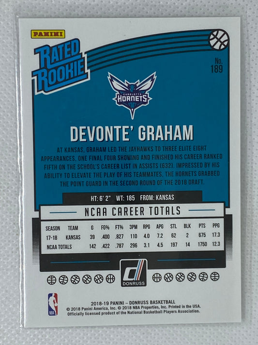 2018-19 Panini Donruss Devonte Graham Rated Rookie #189 Hornets RC