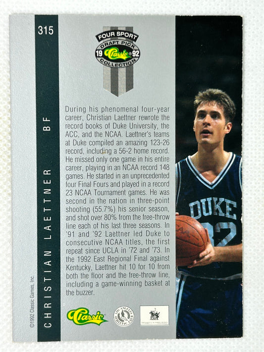 1992 Classic Four Sport #315 Christian Laettner Rookie Card Duke Blue Devils
