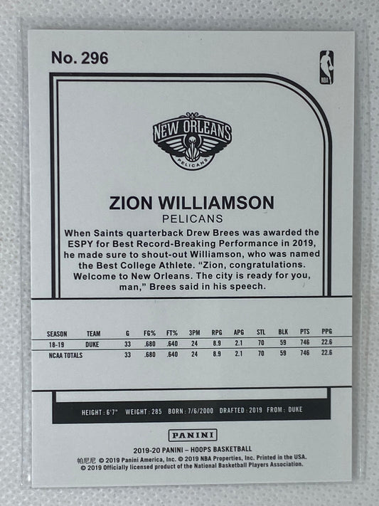 2019-20 Panini NBA Hoops Zion Williamson Rookie RC Tribute #296