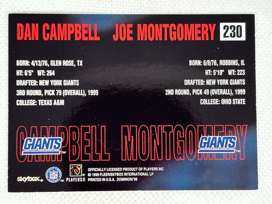 1999 Skybox Dominion Rookie Dan Campbell Joe Montgomery #230 New York Giants Detroit Lions