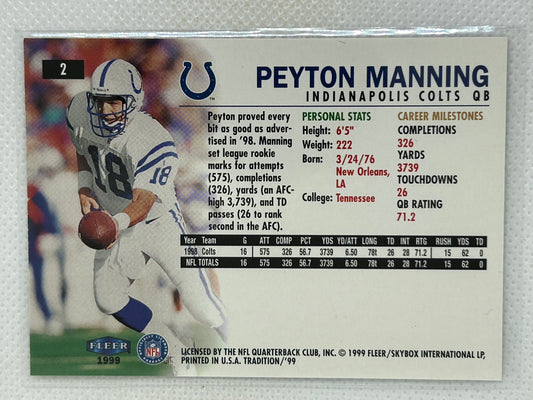 1999 Fleer Tradition Peyton Manning #2 Red 2nd Year Indianapolis Colts