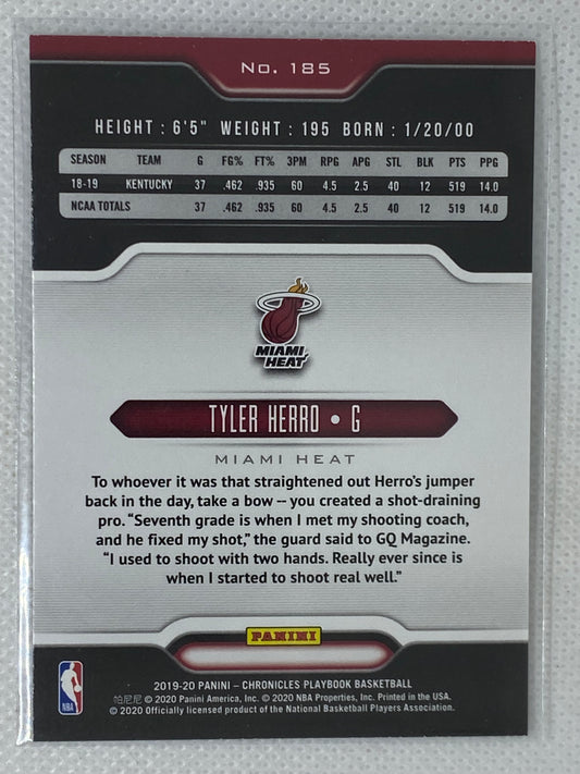 2019-2020 Panini Chronicles Tyler Herro Playbook Rookie RC #185