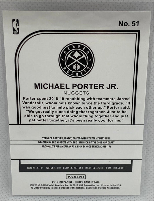 2019/20 Panini NBA Hoops Michael Porter Jr. Base 2nd Year Denver Nuggets #51