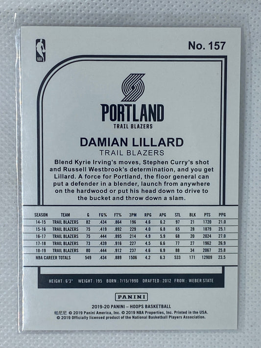 2019-2020 Panini Hoops Damian Lillard Base Card Portland Trailblazers #157