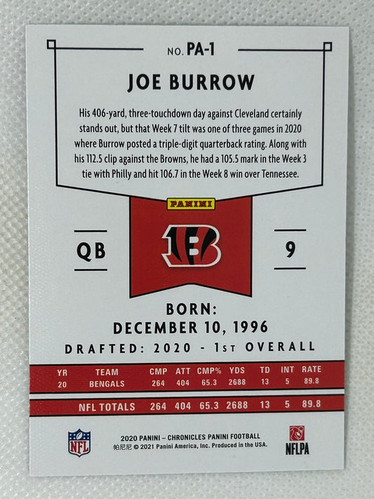 2020 Panini Chronicles Joe Burrow Rookie Pink #PA-1 Cincinnati Bengals