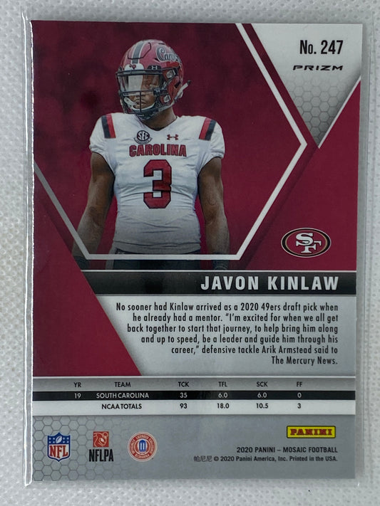 2020 Panini Mosaic No Huddle #247 Javon Kinlaw Silver Disco Prizm Rookie RC