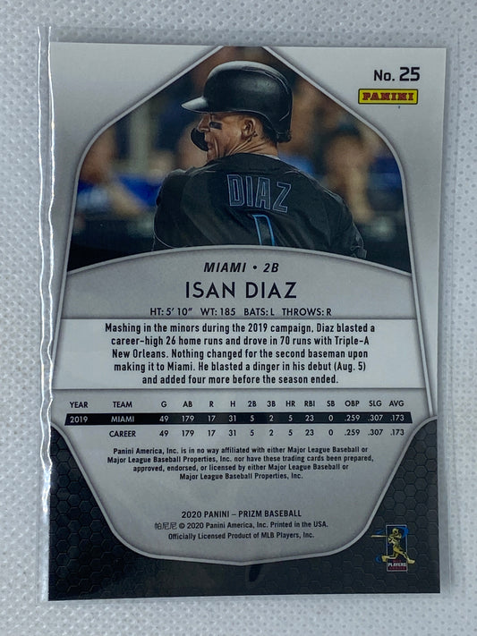2020 Isan Diaz RC Panini Prizm Base Card #25 Miami Marlins Rookie Card