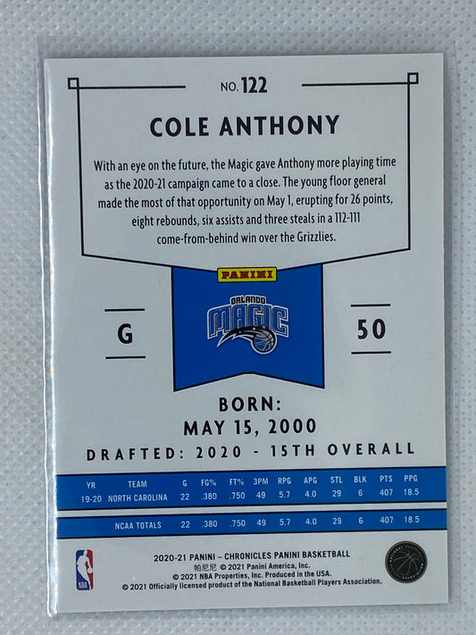 2020-21 Panini Chronicles Cole Anthony Rookie RC #122 Magic