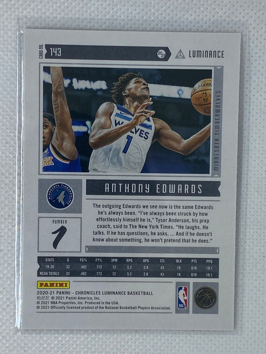 2020-21 Panini Chronicles Luminance Anthony Edwards Rookie Timberwolves #143