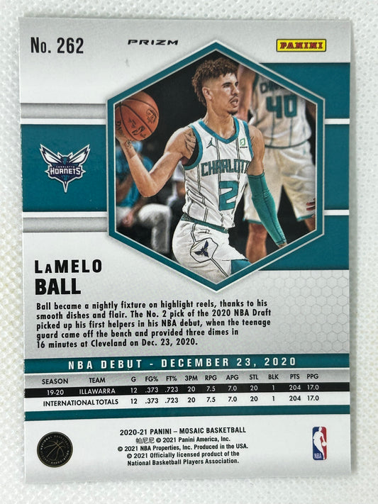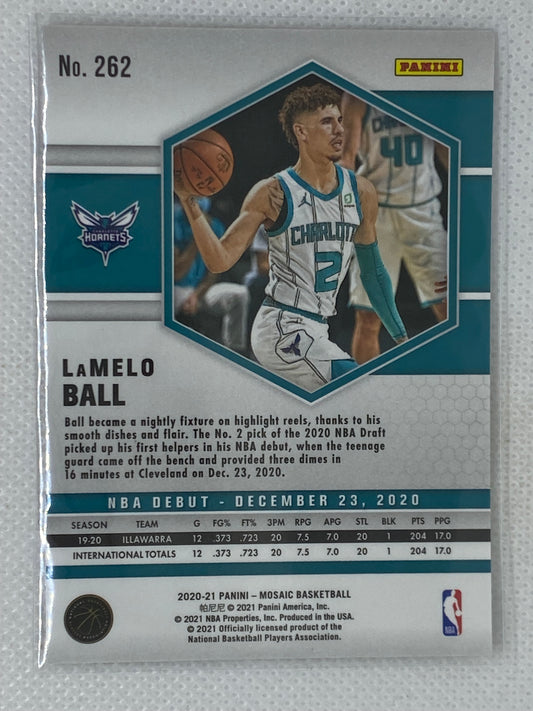 2020-21 Panini Mosaic LaMelo Ball RC Base NBA Debut #262 Charlotte Hornets