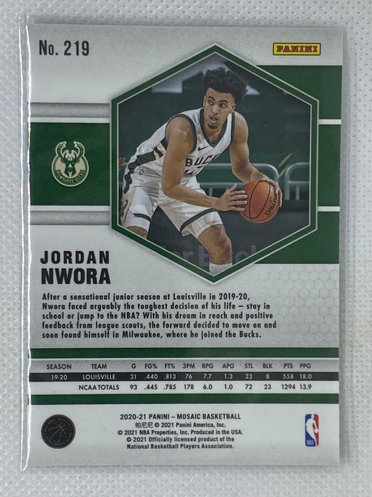 2020-21 Panini Mosaic Base Rookie Jordan Nwora #219 Milwaukee Bucks