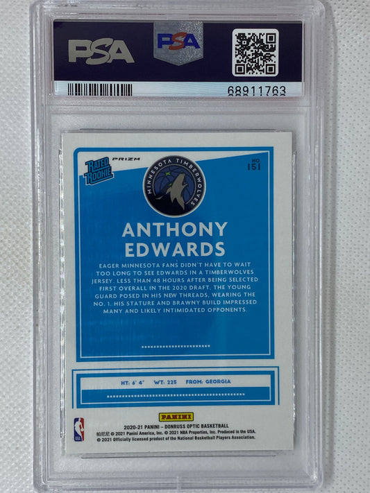 2020-21 Panini Optic Fanatics Box Set Silver Wave Prizm Rated Rookie Anthony Edwards PSA 8 Minnesota Timberwolves