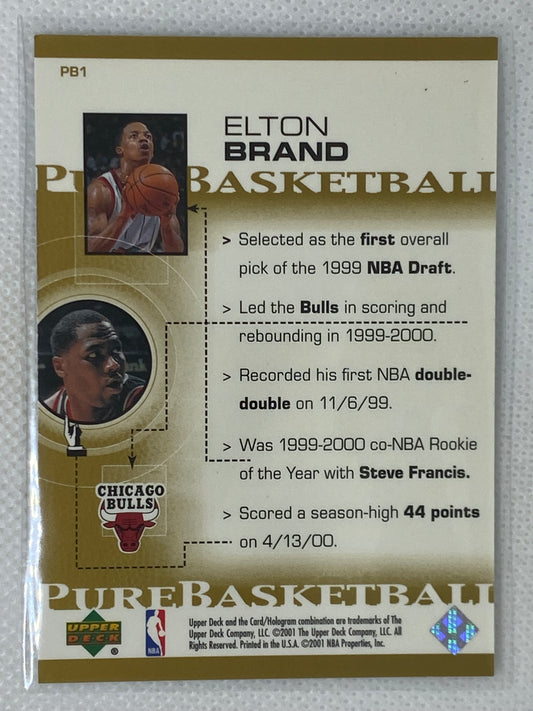 2000-01 Upper Deck Pure Basketball #PB1 Elton Brand Chicago Bulls Signed Card