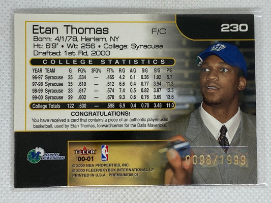 2000-01 Fleer Premium Player Game Used Ball #230 Etan Thomas Dallas Mavericks Rookie