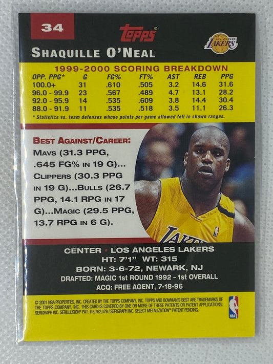 2000-01 Bowman's Best Shaquille O'Neal #34 HOF Los Angeles Lakers