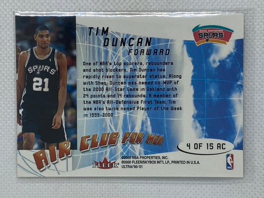 2000-01 Fleer Ultra Air Club For Men #4AC Tim Duncan San Antonio Spurs