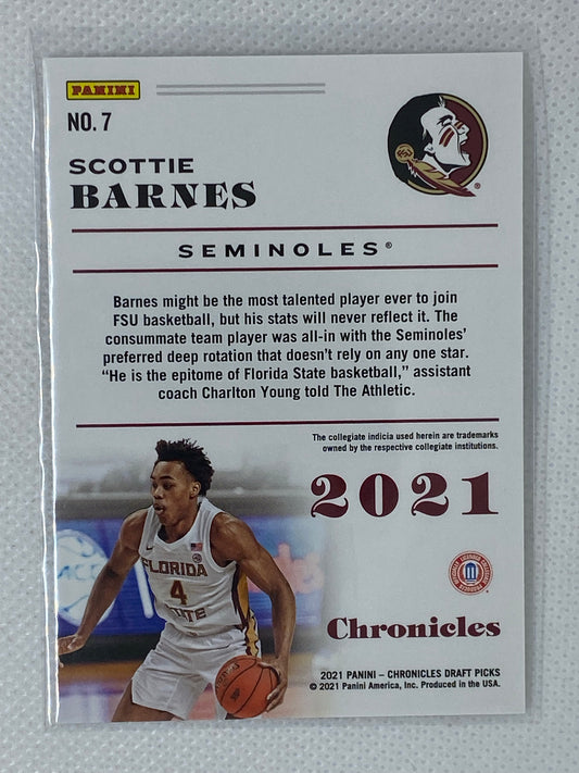 2021 Chronicles Draft Picks Base Card Scottie Barnes Rookie RC #7 Raptors