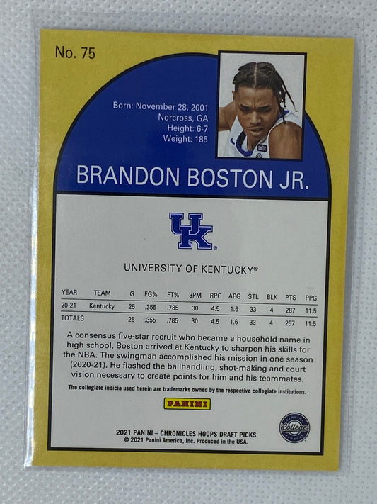 2021 Chronicles Draft Picks Brandon Boston Jr. RC Rookie #75 Hoops Tribute