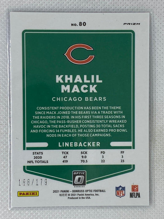2021 Panini Donruss Optic Khalil Mack Blue Prizm Parallel #80 /179 Chicago Bears