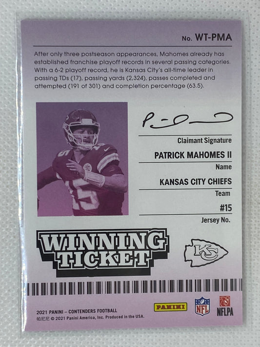 2021 Panini Contenders Winning Ticket #WT-PMA Patrick Mahomes II Kansas City Chiefs