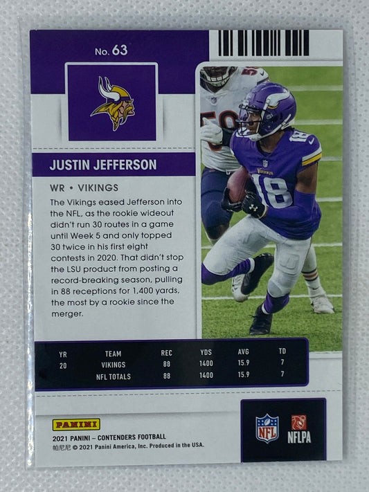 2021 Panini Contenders Season Ticket #63 Justin Jefferson Minnesota Vikings