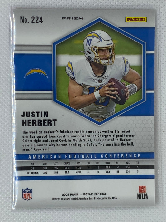 2021 Panini Mosaic Justin Herbert AFC Camo Pink Prizm #224 SSP Los Angeles Chargers