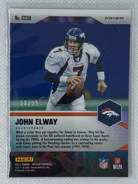 2021 Panini Mosaic Center Stage Blue Prizm /99 John Elway #CS30 Denver Broncos HOF