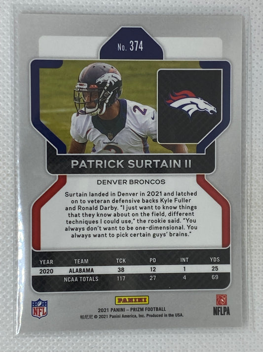 2021 Panini Prizm Patrick Surtain II Rookie #374 Denver Broncos