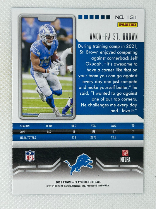2021 Panini Playbook Rookie Card Amon-Ra St. Brown #131 Detroit Lions Signed Card