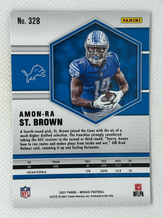 2021 Panini Mosaic Rookie Card Amon-Ra St. Brown #328 Detroit Lions Signed Card