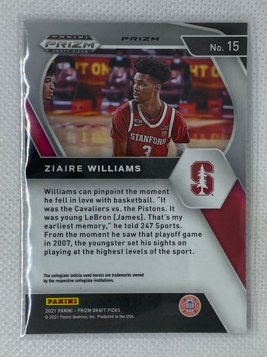 2021 Panini Prizm Draft Basketball Silver Ziaire Williams Card #15 Stanford