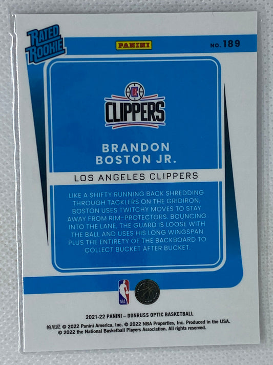 2021-22 Donruss Optic #189 Brandon Boston Jr. RC Rated Rookie Clippers