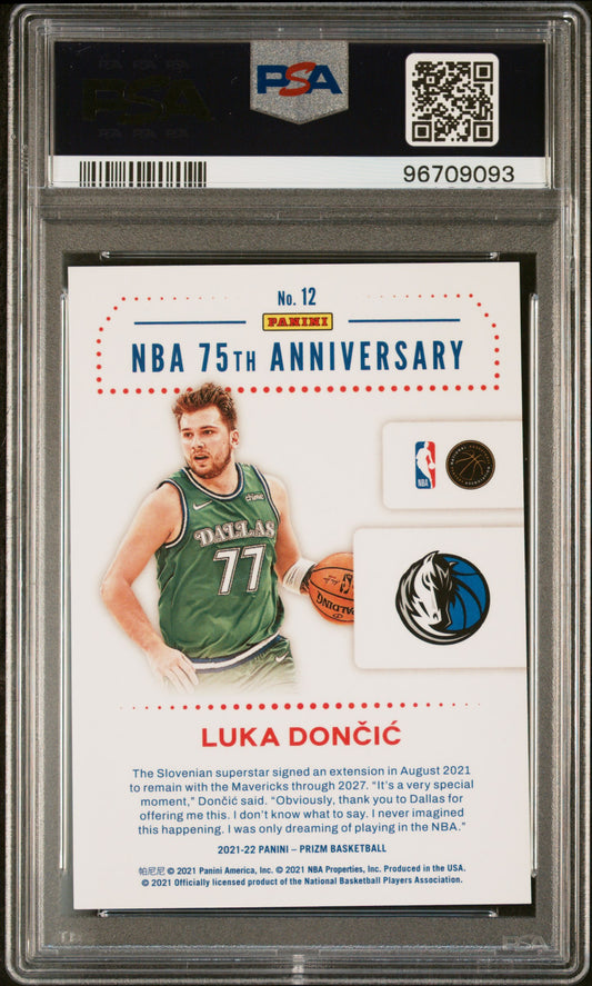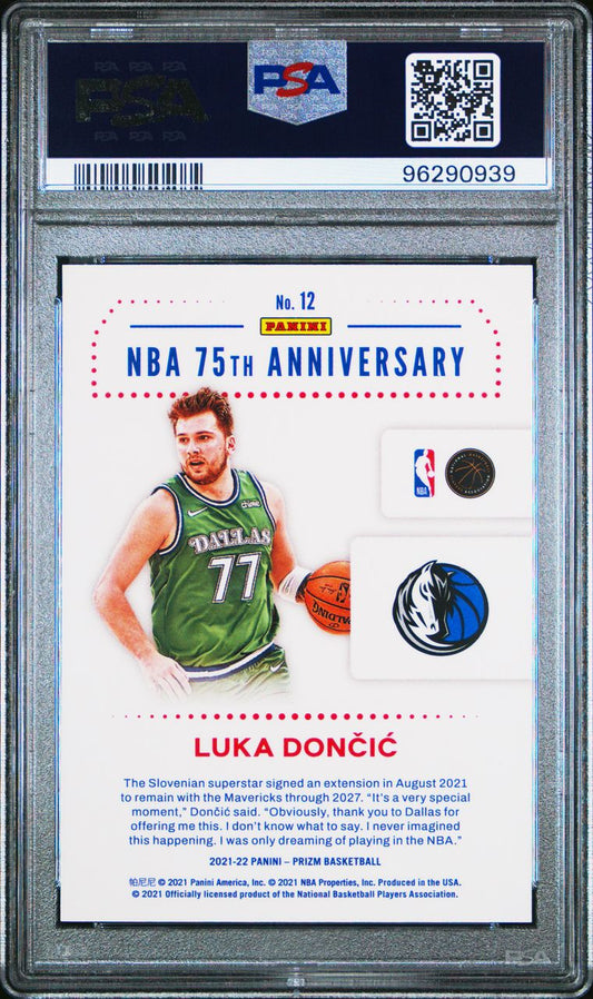 2021-22 Panini Prizm NBA 75th Anniversary Logo #12 Luka Doncic PSA 10 Case Hit Dallas Mavericks