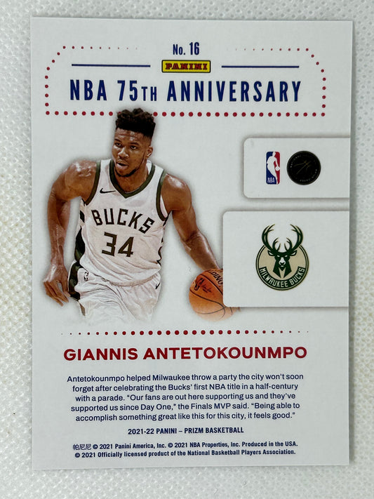 2021-22 Panini Prizm NBA 75th Logo Anniversary Giannis Antetokounmpo #16 Milwaukee Bucks