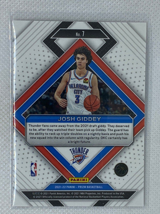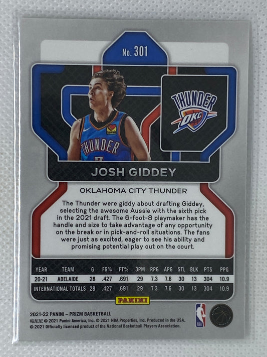 2021-22 Panini Prizm Josh Giddey #301 Rookie RC Oklahoma City Thunder