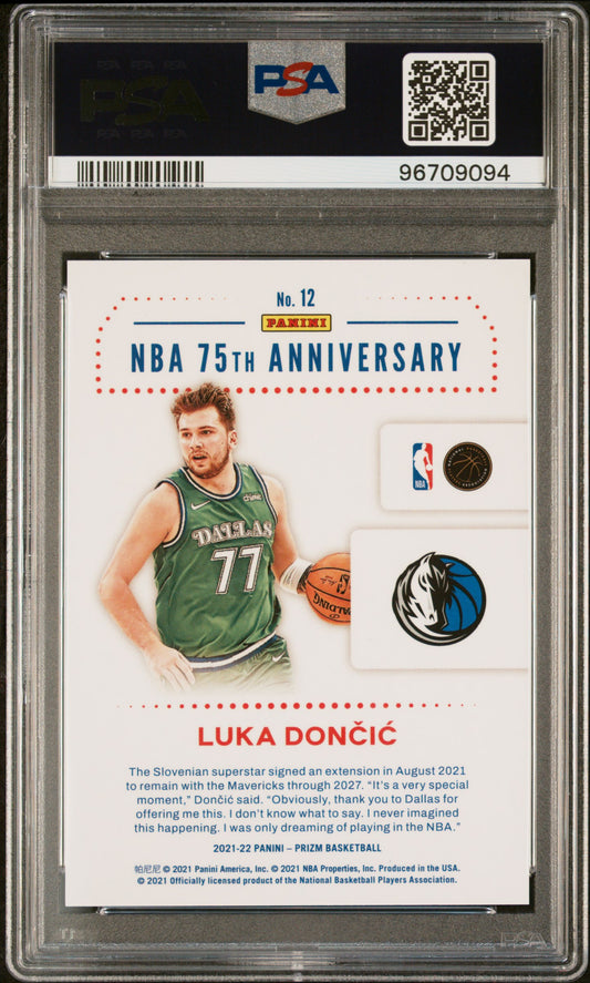 2021-22 Panini Prizm NBA 75th Anniversary Logo #12 Luka Doncic PSA 9 Case Hit Dallas Mavericks