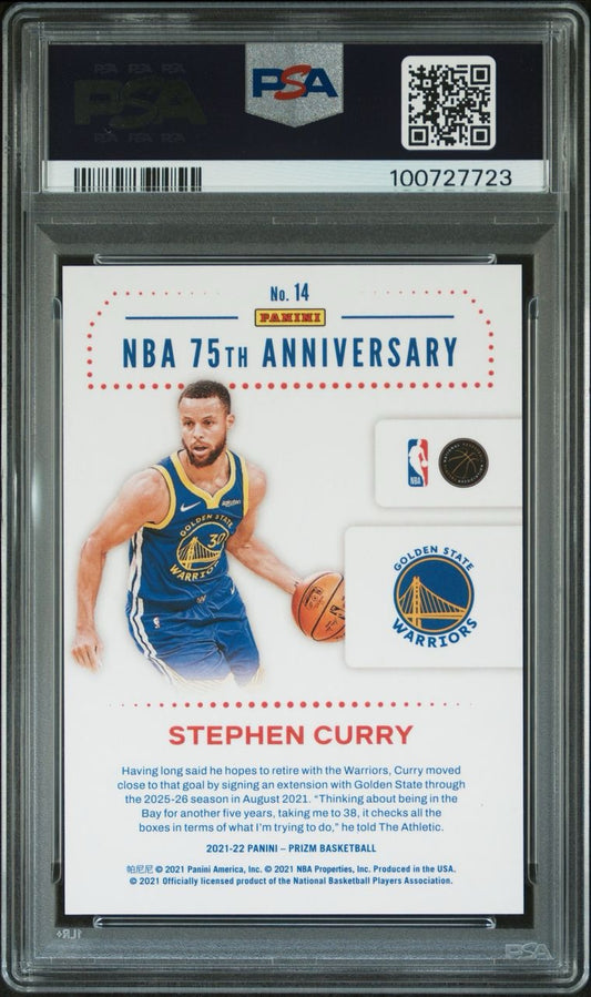 2021-22 Panini Prizm Stephen Curry NBA 75th Logo #14 Golden State Warriors PSA 9
