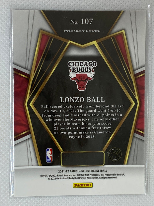 2021-22 Panini Select Lonzo Ball Base Basketball Prizm Premier Level Card #107
