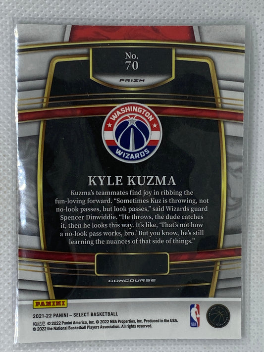 2021-22 Panini Select Kyle Kuzma #70 Concourse Green White Purple Prizm Wizards