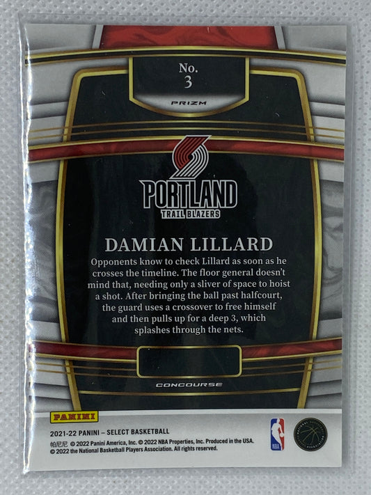 2021-22 Panini Select Basketball Silver Blue Prizm #3 Damian Lillard