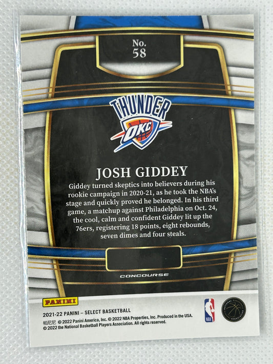 2021-22 Panini Select Rookie Josh Giddey #58 Oklahoma City Thunder