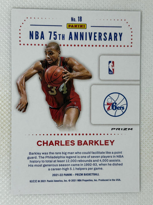 2021-22 Prizm Charles Barkley 75th Anniversary Silver #18 SSP Case Hit Philadelphia 76ers