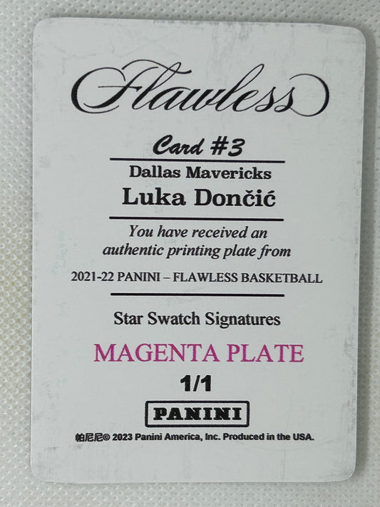 2021-22 Treasures Flawless Star Swatch Signatures Luka Doncic Magenta Plate 1/1 Dallas Mavericks